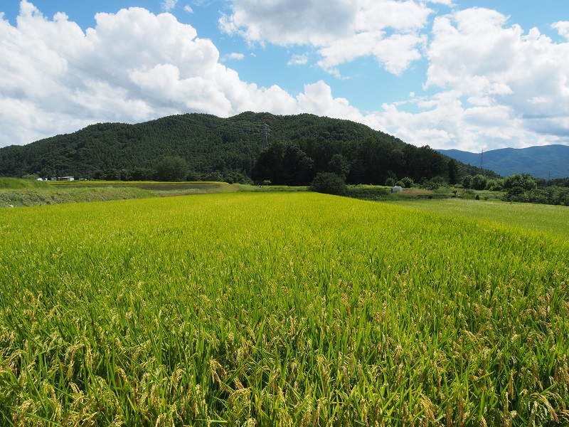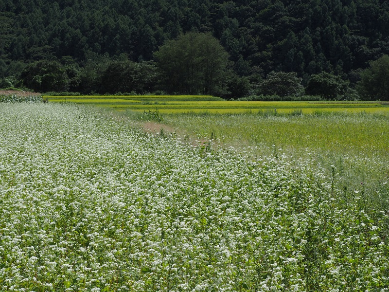 八ケ岳の麓では蕎麦の花が満開です。空も秋の様子となり、稲穂も頭が下がって来ました。蕎麦の花が終わると、9月末からは稲刈りが始まる季節です。