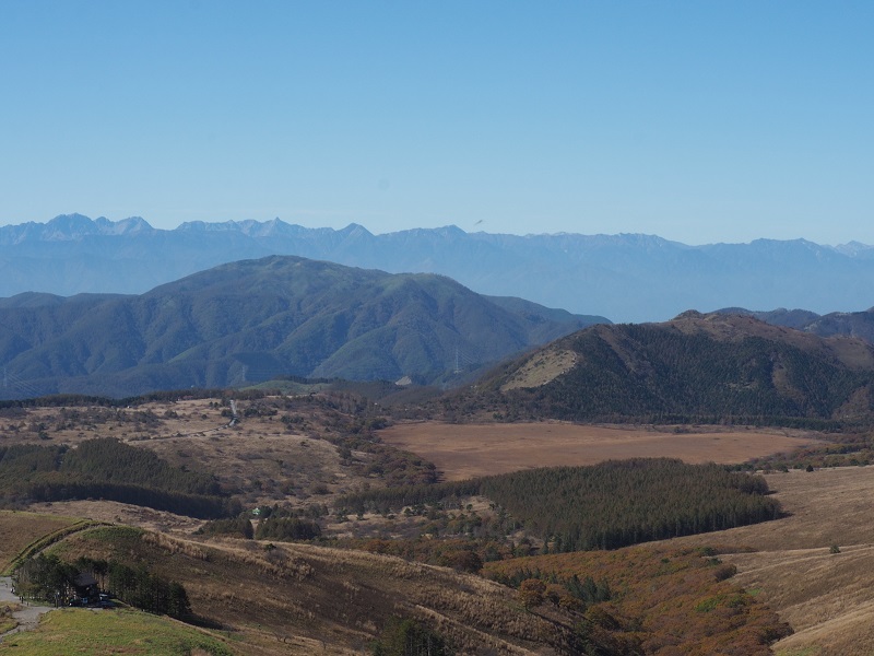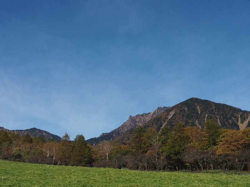 今年の紅葉は遅れています。つい3日ほど前には朝方氷点下3度まで下がったのですが、未だ冷え込みも少なく、山の木々はまだ緑が多く残っています。来週、再来週辺りがが見頃になるでしょうか。一方、山の稜線に出ると空気は澄み、秋空の下素晴らしい風景が拡がっています。