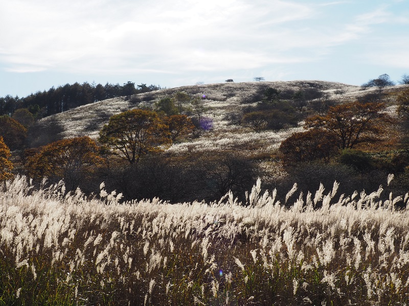 八島湿原はすっかり秋色、草紅葉です。ススキがキラキラ輝き綺麗ですね。