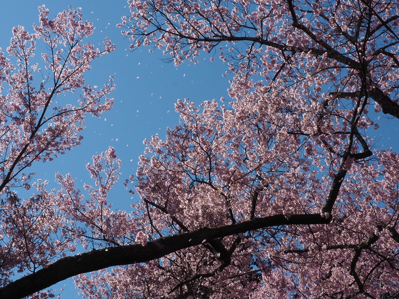 気の早い桜はもう先を急ぎ、時折風を受けてはらはらと散り始めます。桜のトンネルももうすぐ終わりですね。